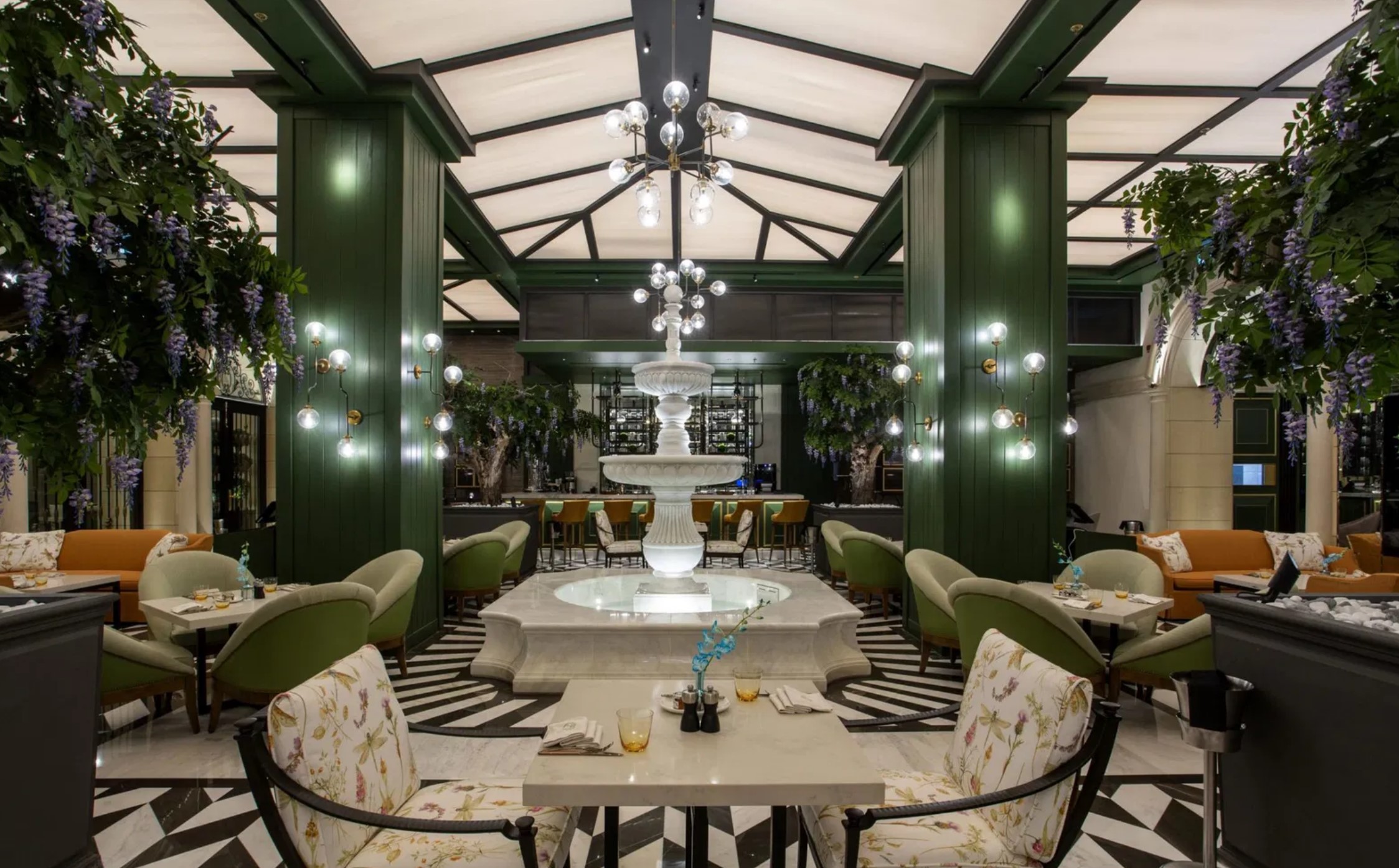 - Two specialty restaurants, all-day dining, spa, external gardens, and pools